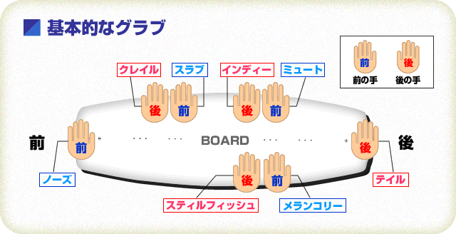 基本的なグラブは以下のようになっております。(例:レギュラースタンス)